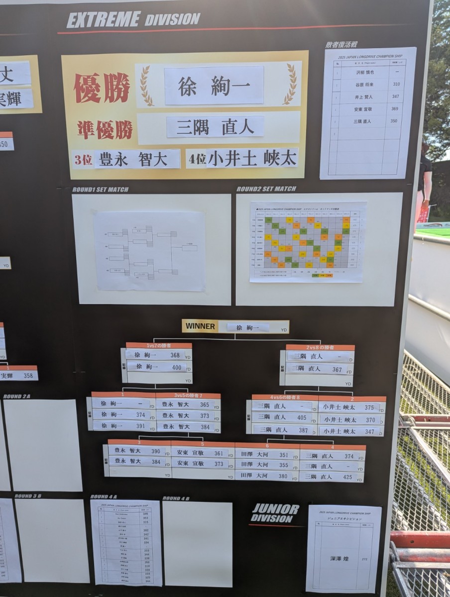 エクストリームディビジョン決勝の戦いは、2020年~2024年まで日本5連覇中の絶対王者【三隅直人プロ】対するは、圧倒的なフィジカルを武器にここ数年成長著しい若手ナンバーワンの【徐 絢一プロ】の戦いとなり400ヤードのビッグドライブで、徐 絢一プロが2025年ドラコン日本チャンピオンに輝きました。